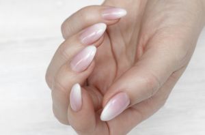 A tendência imita o efeito do blush nas bochechas, mas nas unhas: um degradê suave de rosa no centro, com bordas translúcidas. Como fazer: Comece com uma camada de base transparente; esfume um toque de esmalte rosado no centro da unha, com a ajuda de uma esponjinha; passe uma fina camada de esmalte translúcido por cima para suavizar o degradê; finalize com top coat com efeito glossy para selar o efeito e trazer o brilho vitrificado que faz toda a diferença.